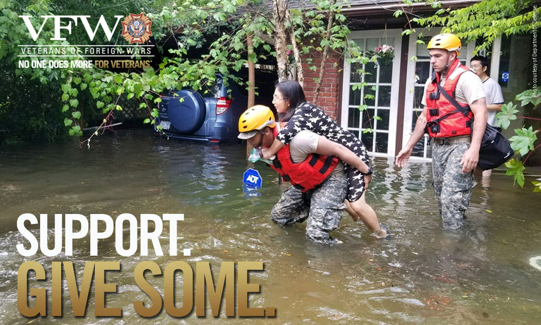 8/28/2017 - KANSAS CITY, Mo. – As the devastation in the wake of Hurricane Harvey continues in Texas and Louisiana, the Veterans of Foreign Wars of the U.S. stands ready to help affected service members, veterans and their families. While the full extent of Hurricane Harvey’s level of destruction is still being evaluated, the VFW knows from its past support of Hurricanes Sandy and Katrina victims that the need for financial assistance will be great. The VFW is calling on you to help...